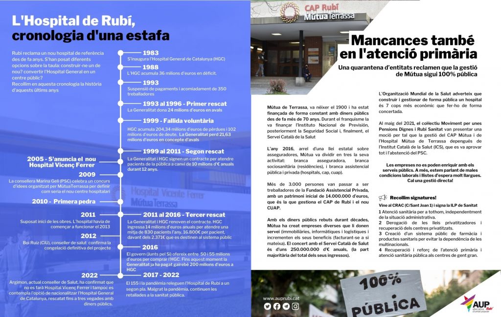 - Moció de Rubí Sanitat i el Moviment per unes Pensions Dignes en defensa del sistema públic de salut i per una gestió pública dels serveis sanitaris a la nostra ciutat, presentada per AUP, ECP, ERC, VR i Cs.