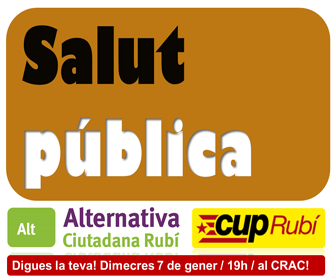 Passades les festes de Nadal l’AUP es torna a posar en marxa amb el Pla de Treball dels pròxims 4 anys (més info aquí)!! Aquest dimecres 7 de gener treballarem la Salut Pública a Rubí. Si creus que pots aportar idees interessants només has de venir el dimecres a les 19h al CRAC! Vine i participa!