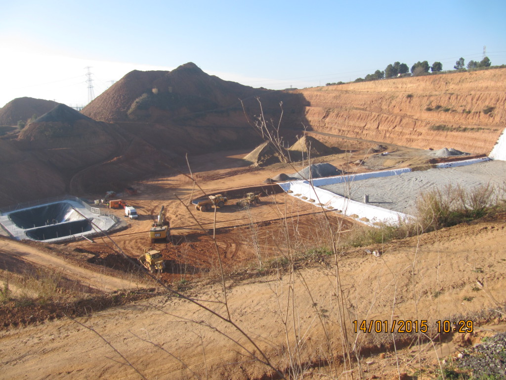 • A Can Balasch avui hi havia força activitat. Ja fa dies que els veïns es queixen que el soroll de les màquines i els camions els desperten a les 6h del matí. Les basses de lixiviats, la capa drenant del fons del vas i les canonades ja estan instal·lades. També han fet una rasa paral·lela al camí, on sospitem que volen aixecar un mur (pantalla) per tal d’impedir la visió de l’activitat des d’aquest punt (segons el Pla Especial Urbanístic, això s’havia de fer plantant arbres).