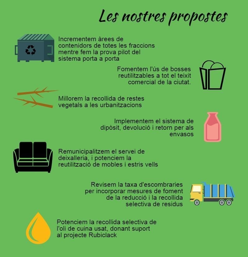En general, i tal com vam explicar a la premsa (veure notícia a RubiTV i a Ràdio Rubí), considerem que en la redacció del plec no s’observa una voluntat de millora en els aspectes que considerem claus: la recollida selectiva, ja que a Rubí ens trobem per sota de la mitjana comarcal; o la possibilitat de destinar una part del servei a projectes socials.
