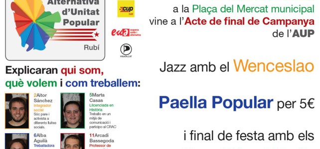 Aquesta campanya electoral és per a nosaltres un doble repte: per una banda, el d’explicar què és l’Alternativa d’Unitat Popular (AUP); i, per l’altra, quines són les propostes del nostre projecte per a Rubí, per millorar-ne la situació. Explicar que